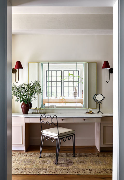 Large, cased natural walnut openings were added to define spaces within the open floor plan. The primary bathroom was redesigned to create a warmer, more intimate feel.