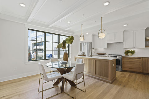 The interiors featured an open floor plan with discreet spaces for the kitchen, living, and dining areas. Light, bright finishes created a relaxing yet sophisticated feel.