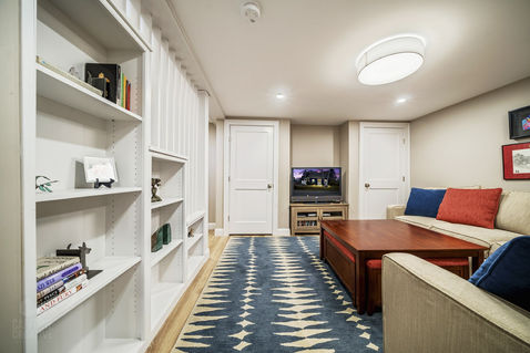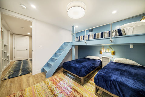 The existing basement was made functional by adding a den and bedroom. Built-in bunk beds were a stylish solution that increases the sleeping capacity of the home.