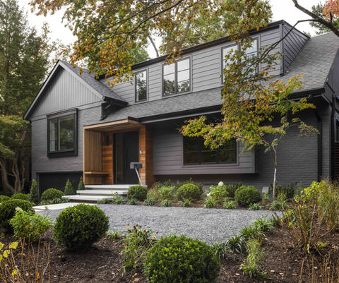 We modernized the front façade for enhanced curb appeal and reconfigured the addition to feature expansive windows that invite views of the rear yard.